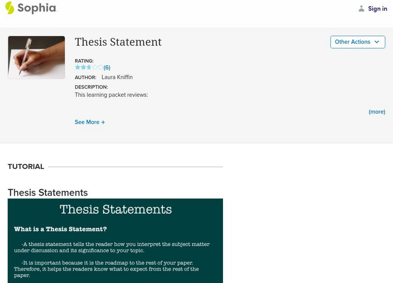 This slideshow lesson focuses on thesis statements; it defines thesis and its purpose. It explains the three types of thesis statements: analytical, expository, and argumentative; offers questions to ask about the thesis to determine if...