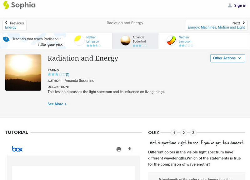 This lesson discusses the light spectrum and its influence on living things. It is 2 of 3 in the series titled "Radiation and Energy."