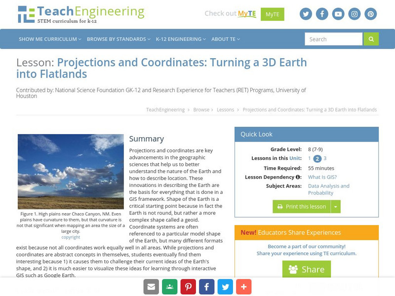Teach Engineering: Projections and Coordinates: Turning a 3 D Earth Into Flatlands