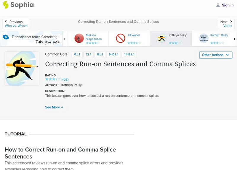 Sophia: Correcting Run on Sentences and Comma Splices: Lesson 1