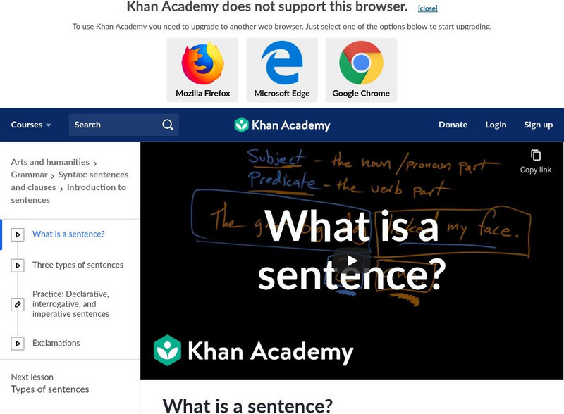 A video [4:33] explaining that a sentences is a grammatically correct idea with a subject and a verb.