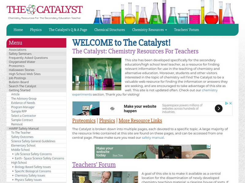 This site directs teachers to relevant information for use in the teaching of chemistry. The site's content includes projects, demos, labs and activities, and more.