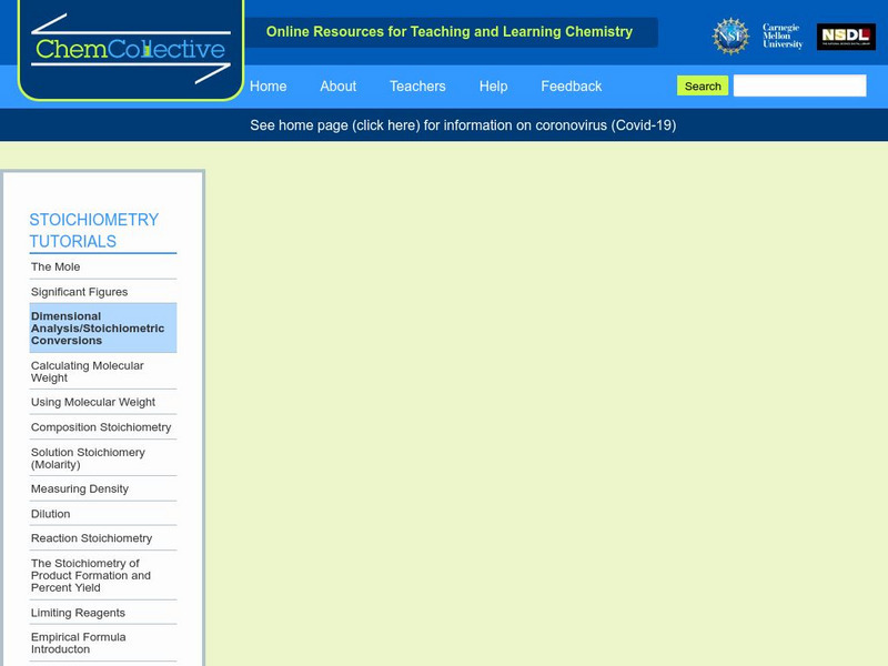 Chem Collective: Stoichiometry Tutorials: Dimensional Analysis