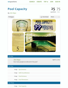 Here's hoping that we can all fit into the pool. Given pictures and dimensions of a pool in tile lengths, scholars decide how many people can fit into the pool. This requires consideration of area, as well as the application of some...