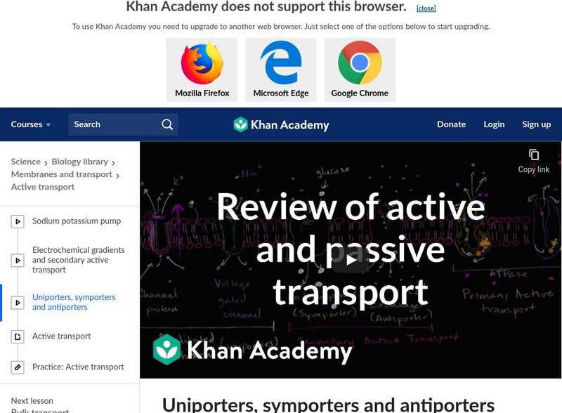 Khan Academy: Uniporters, Symporters and Antiporters