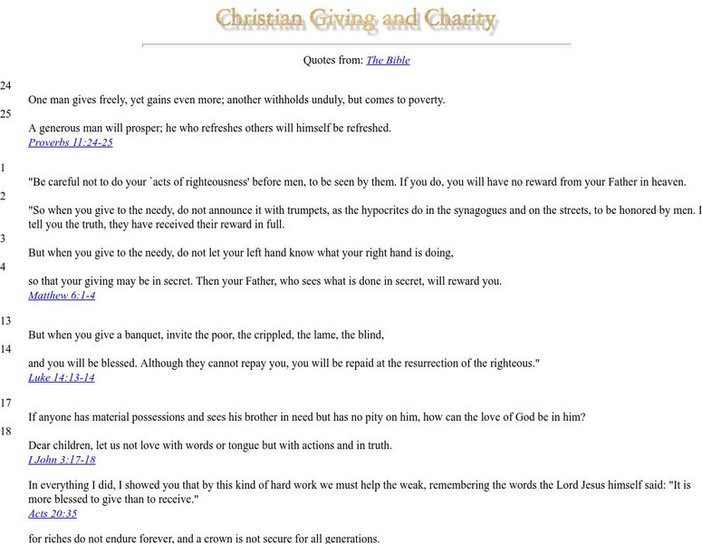Quotes from the Bible concerning charity. Includes links to each biblical quotation.