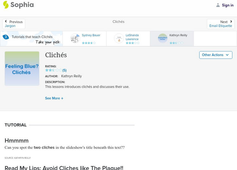 This lessons introduces cliches and discusses their use. It is 1 of 4 in the series titled "Cliches."