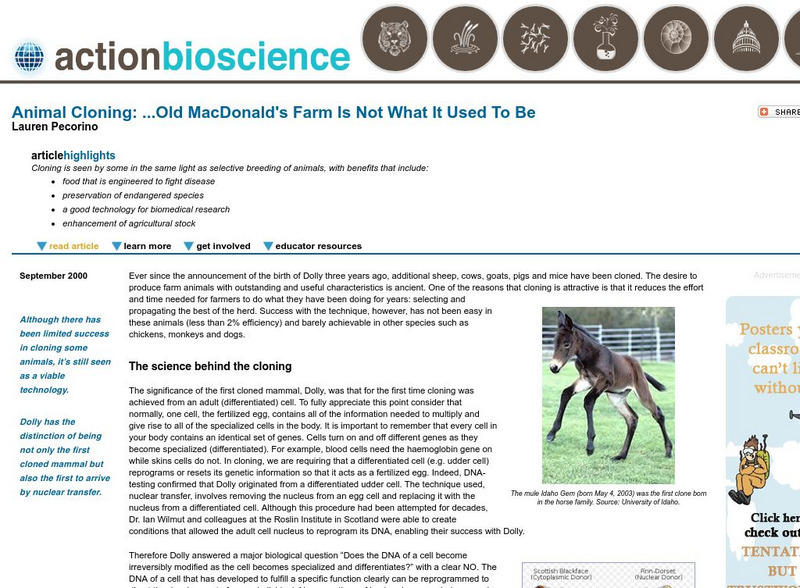 Action Bioscience: Animal Cloning, Old Mac Donald's Farm Changed