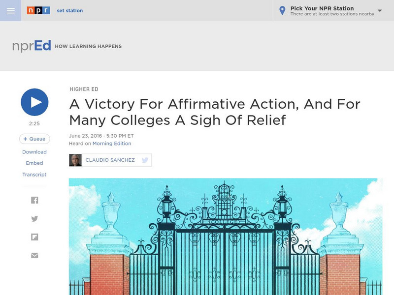 Npr: Week of 6 27 16: A Victory for Affirmative Action, a Sigh of Relief