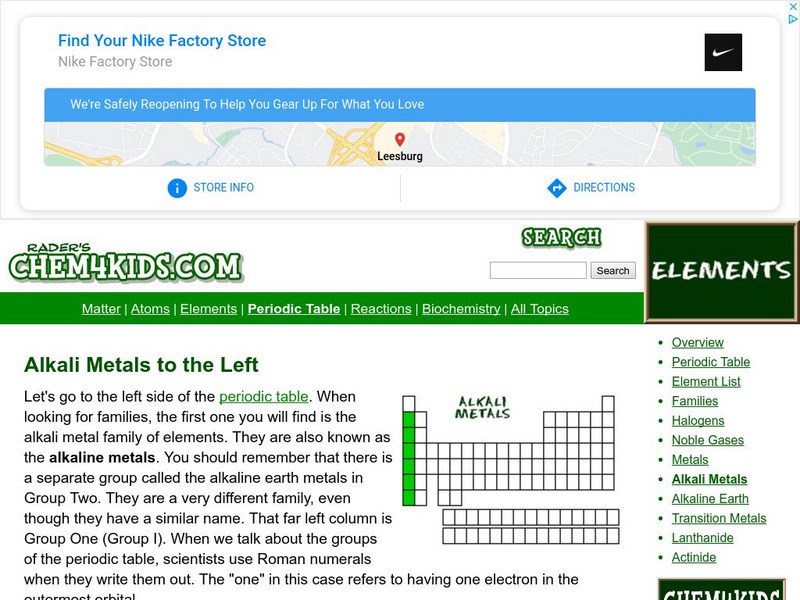 This Chem4Kids site provides a nice overview of the alkali metals found on the periodic table. Content explores who is in this family, and their shared traits.