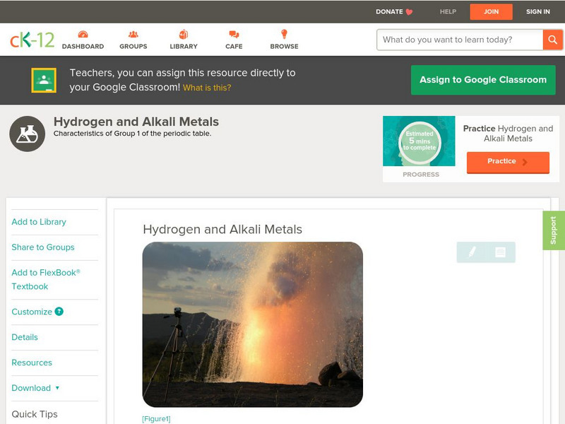 Ck 12: Chemistry: Hydrogen and Alkali Metals