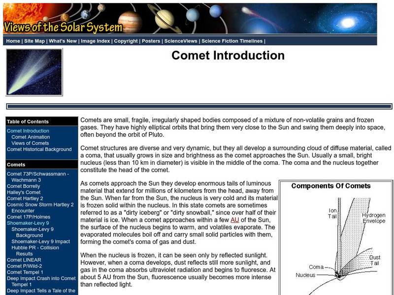 Provides a brief description of comets, where they come from, and the different parts that make up a comet.