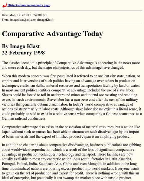 This article from Hartford Web Publishing applies the concept of Comparative Advantage in today's world. Discussion of import and export explains how obstacles can be overcome.