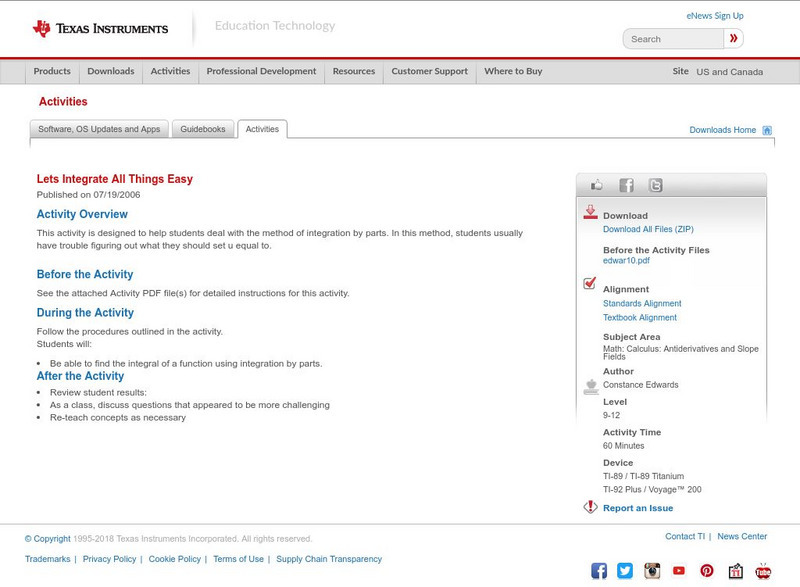 This activity is designed to help students deal with the method of integration by parts. In this method, students usually have trouble figuring out what they should set u equal to.