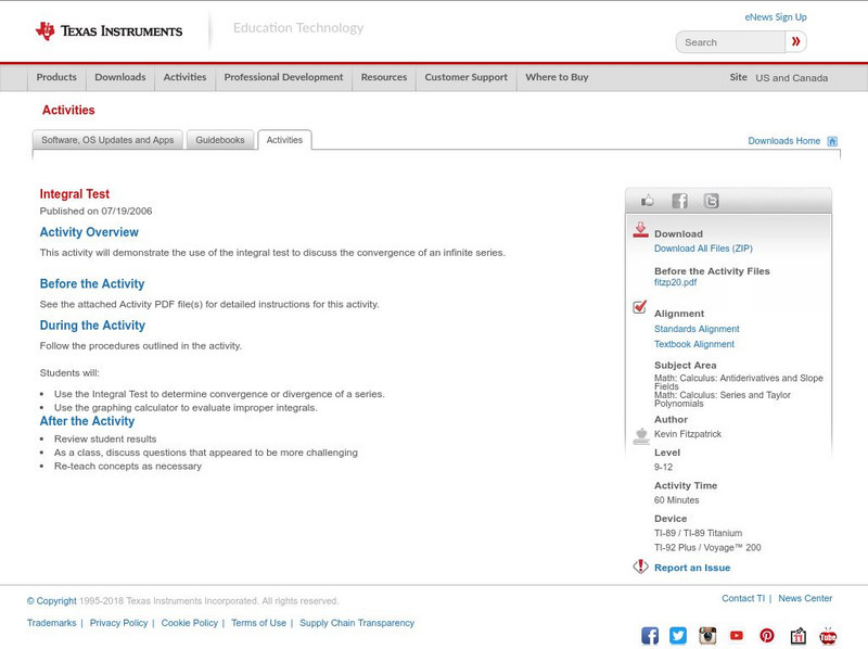This activity will demonstrate the use of the integral test to discuss the convergence of an infinite series.