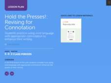 Eighth graders investigate the effect that connotations can have on writing. They are shown examples to build background knowledge before attempting the exercise. They finish by writing a paragraph to practice what they have learned.