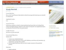 Explore words, definitions, their connotations and associations with brand names. Middle and high schoolers identify words used in commercials and determine their effect upon the consumer population. They explore how meanings are...
