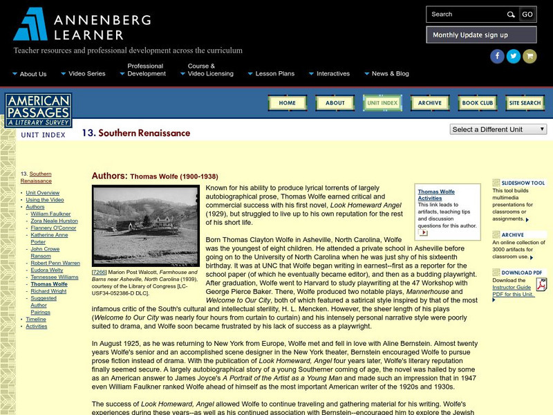 Annenberg Learner: American Passages: Southern Renaissance: Thomas Wolfe