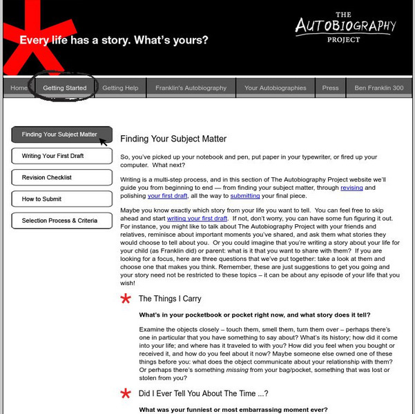 Part of a project that culminated in 2006, this site contains great supports for those who are attempting to write about their own lives. Getting started, writing drafts, revising and other topics are all addressed.