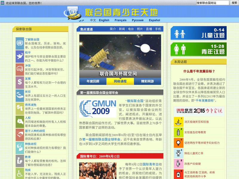 These are the Chinese language pages of the UN's CyberSchool Bus site. Not as much content as the English version but pages do include resources and information about different nations and cities, UN-sponsored children's events (make a...