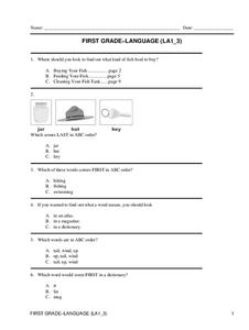 In this language arts worksheet, 1st graders answer multiple choice questions about abc order, research sources, and more. Students complete 25 questions.