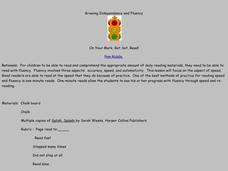 Students increase their reading fluency through one-minute drills. Working in pairs, students read a grade level appropriate text in one-minute intervals. After reading they determine their speed through a word count. Students...