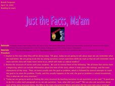 Elementary learners identify the main elements of story structure and form questions to summarize their reading. They listen as the teacher reads a story and then write questions to determine (1) main characters, (2) setting, (3)...