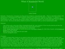 Young scholars review the meaning of summarization and talk about the meaning of visualization and list them on the board. They listen to "What A Wonderful World" and picture the images in their minds. They then read part of their...