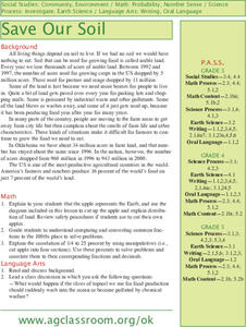 Students explore the need for good farm land and reasons for the disappearance of agricultural areas. They brainstorm environmental friendly decisions and soil conservation. In their community, students explore new land developments...