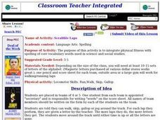 Students access that the purpose of this activity is to integrate physical fitness with spelling of core vocabulary words used in science and social studies. Students play the Scrabble Lap Game.