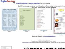 In this songs worksheet, students watch a video of a song titled A Bunny Song and then fill in the blanks to the song. Students complete 24 lines of the song.