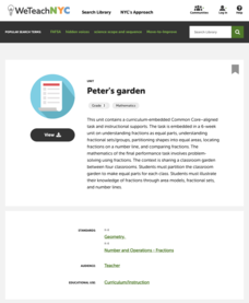 Watch scholars' understanding of fractions bloom. The resource presents a performance task where the fractions are equal parts from the same whole, and mathematicians must use them to solve problems about a grade level garden. Teachers...