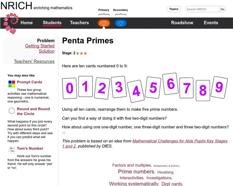 University of Cambridge: Nrich: Penta Primes