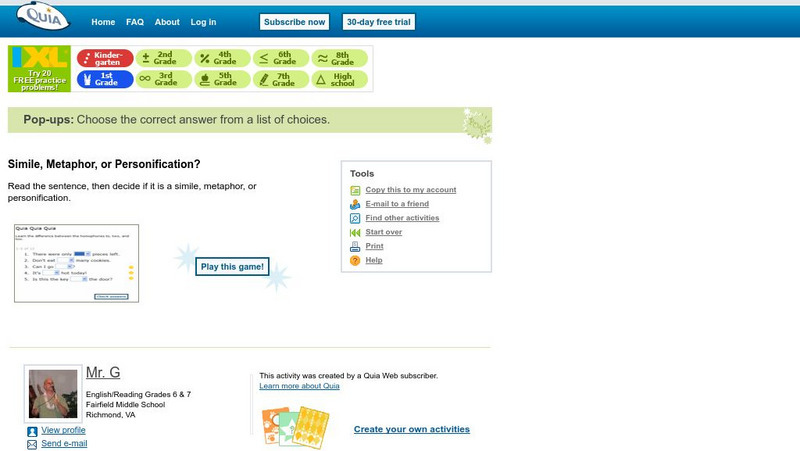 A twelve-part learning module on figurative language including links to images, videos, a song, and a game to help students learn.