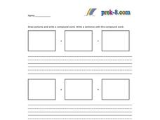 For this recognizing compound words worksheet, students draw pictures of the two words and the compound word which they create and write a sentence using each compound word correctly. Students illustrate and write sentences for eight...