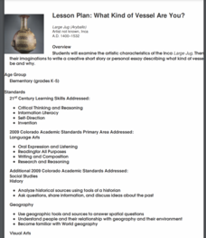 This is a strange question; but what kind of vessel would you be and why? After examining images of a large Inca jug, the class sets to writing a creative narrative that answers that very interesting question. They start by researching...