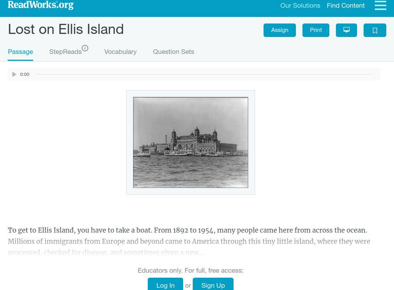 Read Works: Lost on Ellis Island