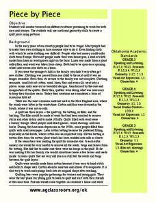 Learn the art of quilting with this lesson plan that can be connected to a history lesson plan on quilts in Ancient Egypt, China, and modern art. After studying a general history of quilts, its uses, and the history of different...
