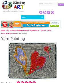 Students create their own yarn painting using glue and scraps of yarn and wool.