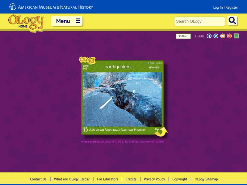 This interactive OLogy card defines earthquakes, provides fast facts about them, and lets you test your knowledge of earthquakes with fact-or-fiction questions.