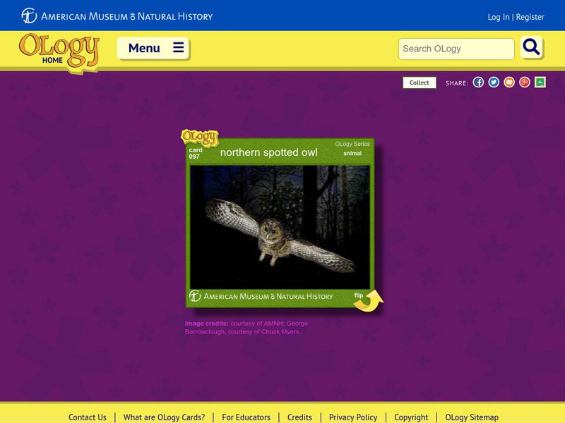 OLogy cards are like virtual baseball cards about all kinds of science topics. This one is about the northern spotted owl and it contains information about the habitat, diet, and other ecological information.