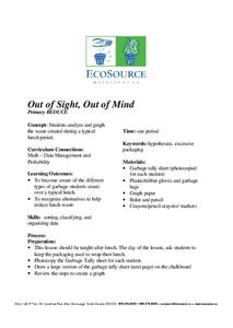 Pupils analyze and graph the waste created in a typical lunch period. They increase awareness of various types of garbage students create during a lunch period. They construct and label a graph of lunch waste. They brainstorm...