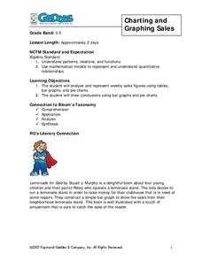 Students analyze graphs, charts and tables. In this data analysis lesson, students practice creating and analyzing charts, graphs and tables corresponding to sales and surveys. This lesson uses data relevant to students and includes...