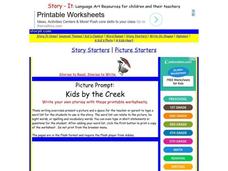 Students finish the story in this picture prompt, which shows two kids fishing by a creek. The prompt lends well to creative writing, as well as autobiographical writing. A word box allows teachers to type words that they want students...