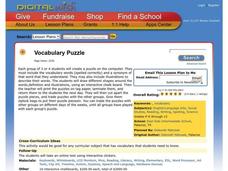 Students create vocabulary puzzles using the computer. In this vocabulary puzzle lesson, students create vocabulary puzzles using computer software. Students include synonyms of the words and illustrations. Students trade the finished...