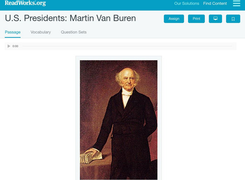 Read Works: u.s. Presidents Martin Van Buren