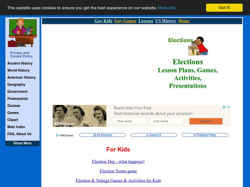 This site provides suggestions for lesson plans and unit plans to teach about the U.S. system of elections, political parties, and campaigns.