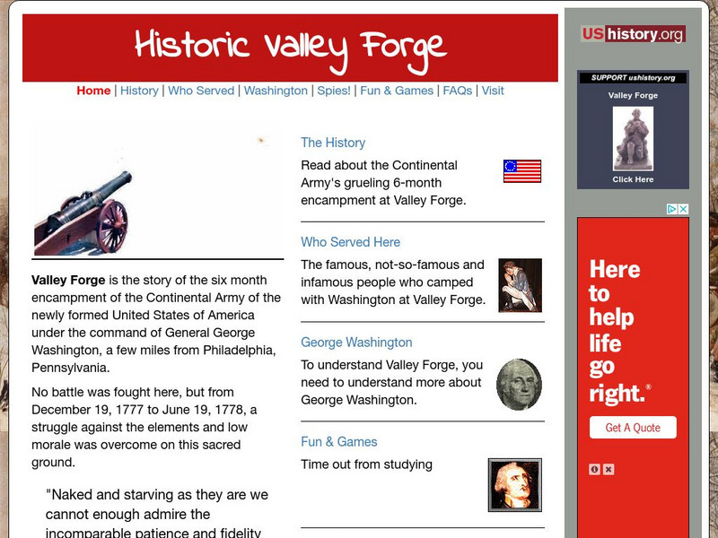Washington and his men had to endure six months of harsh winter in their encampment at Valley Forge. Use this site to learn about what they had to deal with and who was there.