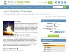 Students investigate space travel. In this space travel lesson plan students examine space exploration history, engineers and scientists involved in space exploration, and Newton's third law of motion. Students make rockets.