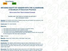 Students list/compare the number of men in history they can think of to the number of famous women. They discuss why there are more men than women on the list. They examine their textbooks for the same comparison and discuss the results.